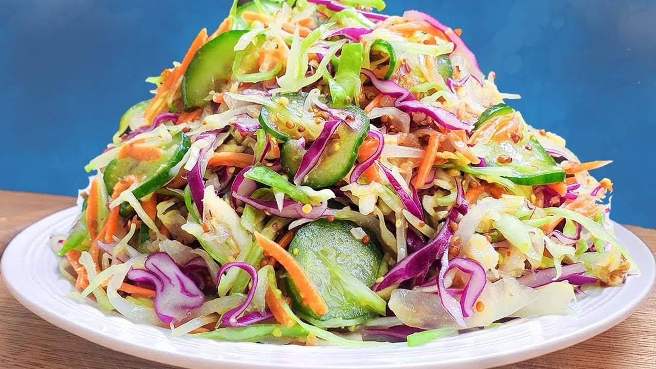 4. Dress the Salad: Pour the dressing over the vegetables and toss to coat evenly. Season with salt and pepper according to your taste.5. Garnish and Serve: Sprinkle fresh mint or basil leaves on top for a burst of aroma and flavor. Your vibrant cabbage salad is ready to enjoy!